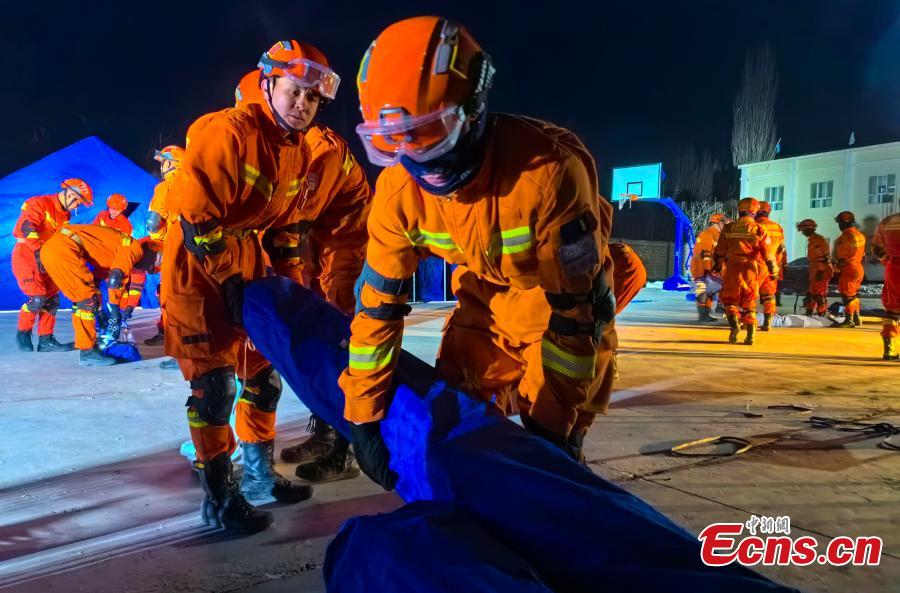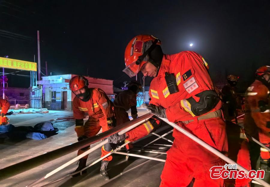 Rescuers set up temporary shelters in Wushi County of Aksu Prefecture, northwest China's Xinjiang Uyghur Autonomous Region, Jan. 23, 2024. (Photo: China News Service/Wang Xudong)