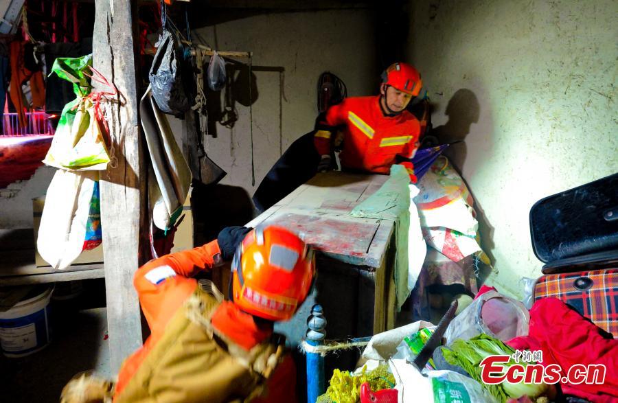 Rescuers inspect the damage of local houses in Wushi County of Aksu Prefecture, northwest China's Xinjiang Uyghur Autonomous Region, Jan. 23, 2024. (Photo: China News Service/Wang Xudong)