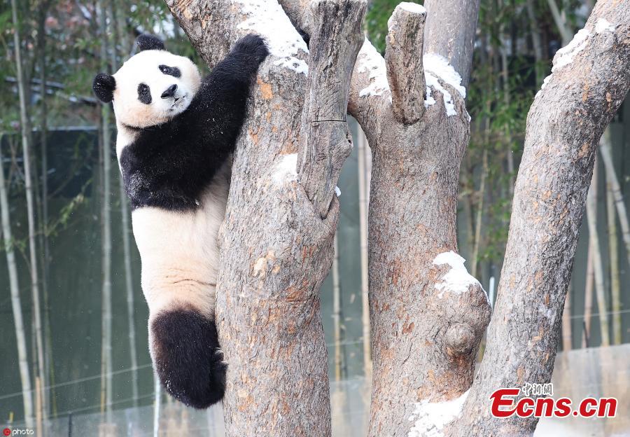 File photo shows giant panda Fu Bao playing at the Everland theme park in South Korea. (Photo/ICphoto)