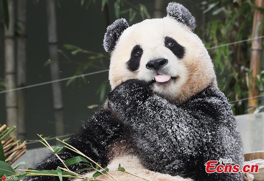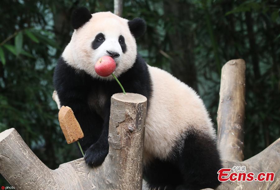File photo shows giant panda Fu Bao eating snacks at the Everland theme park in South Korea. (Photo/ICphoto)
