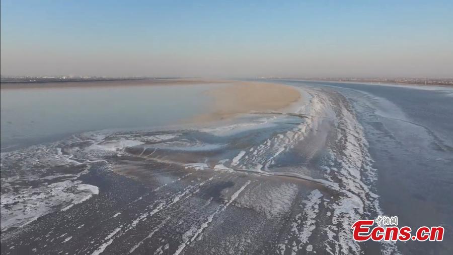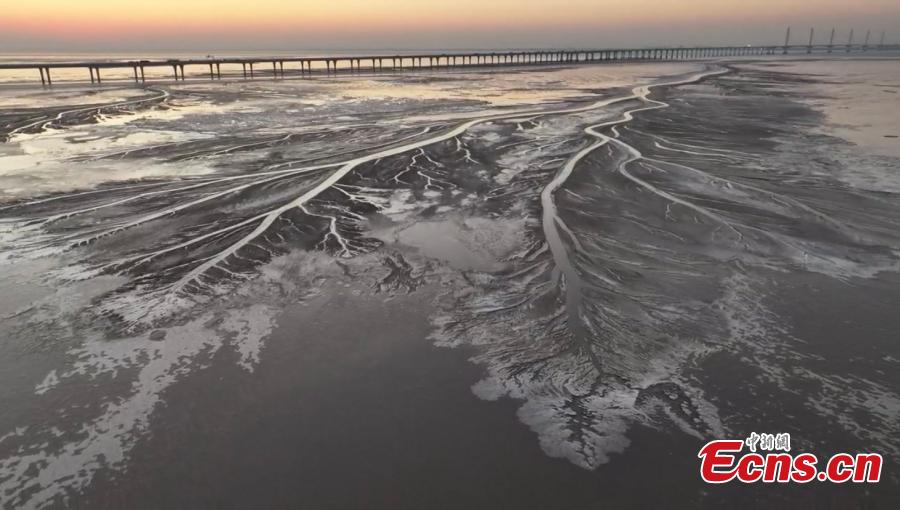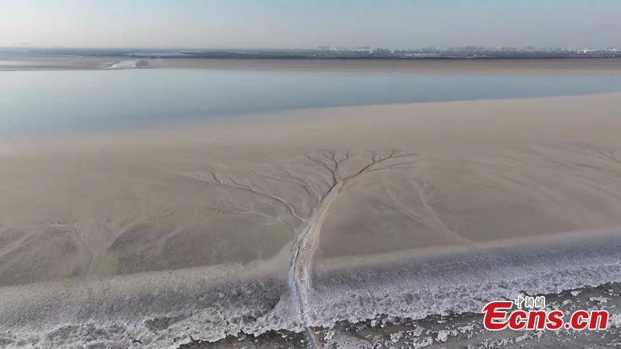 Giant tree pattern appears on the frozen Qiangtang River due to a cold snap in Hangzhou, east China's Zhejiang Province, Jan. 24, 2024. (Photo: China News Service/Shen Yiliang)