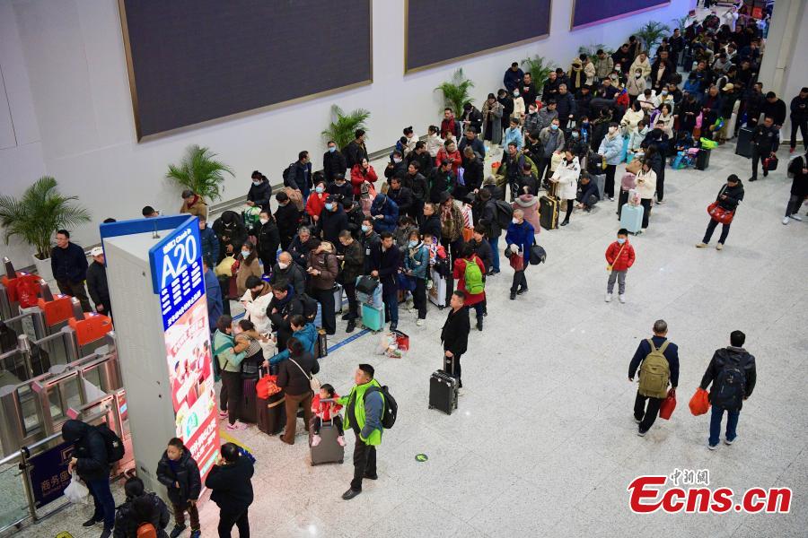 Passengers wait to check in at the Shenzhen north railway station in south China's Guangdong Province, Jan. 26, 2024. (Photo: China News Service/Chen Jimin)