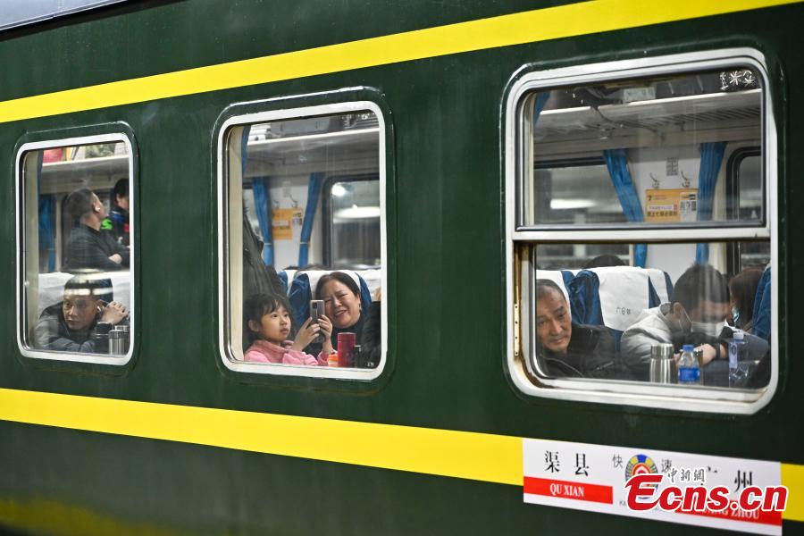 Passengers wait for departure on train K4562 at the Guangzhou railway station in south China's Guangdong Province, Jan. 26, 2024. (Photo: China News Service/Chen Jimin)