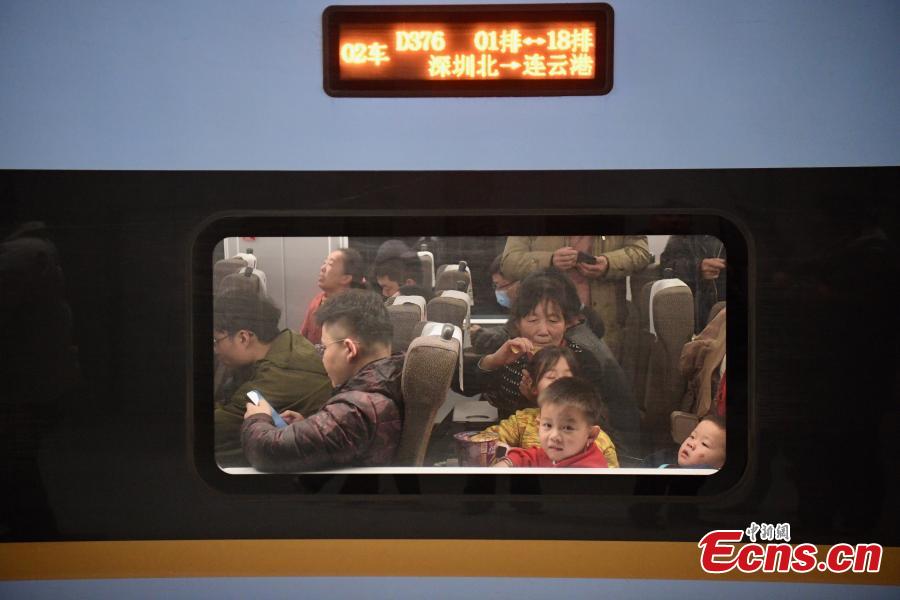 Kids take high-speed train with their parents at the Shenzhen north railway station in south China's Guangdong Province, Jan. 26, 2024. (Photo: China News Service/Chen Jimin)