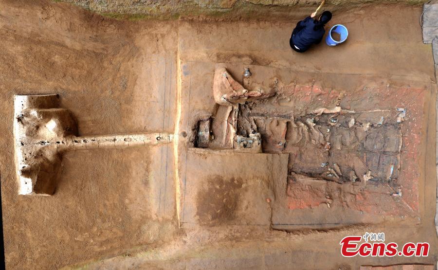 A four-wheeled wooden carriage, a new batch of relics has recently been unearthed from the pit. A total of nine tombs were discovered during a major excavation that started in 2011. Excavations of Pit No.1, the largest burial pit excavated so far, first started in 2013.