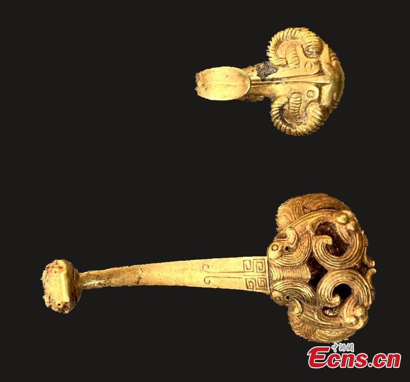 Gold relics are unearthed from a pit near Emperor Qinshihuang's Mausoleum in Xi'an, northwest China's Shaanxi Province. (Photo provided to China News Service)