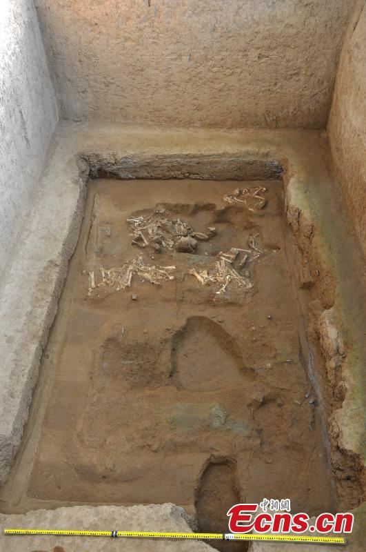 Cultural relics are unearthed from a pit near Emperor Qinshihuang's Mausoleum in Xi'an, northwest China's Shaanxi Province. (Photo provided to China News Service)
