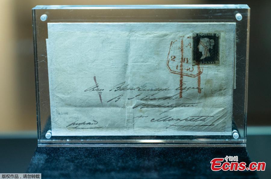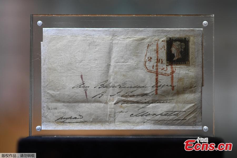 The Mulready letter-sheet combined with a Penny Black stamp is displayed during a Sotheby's media preview in New York, the United States, Jan. 26, 2024. (Photo/Agencies)