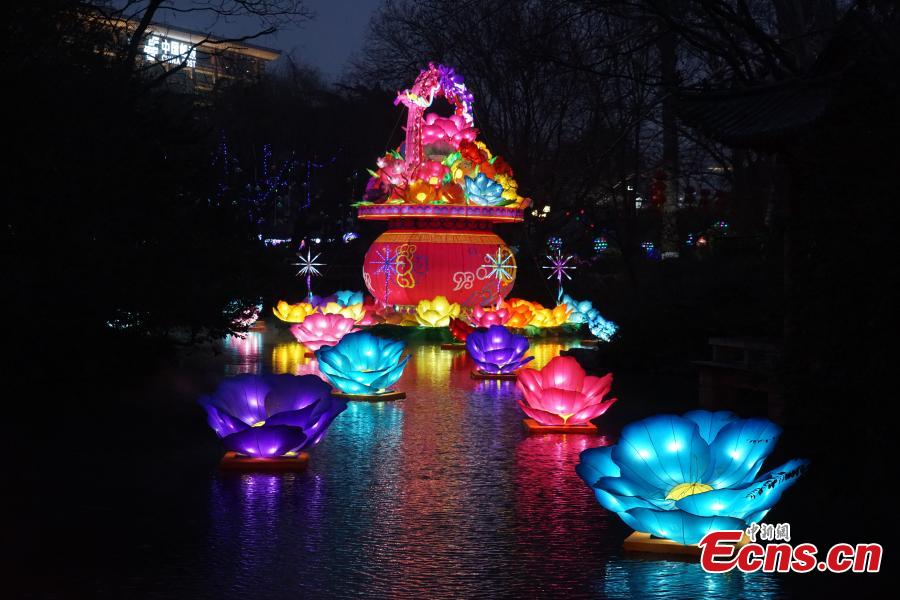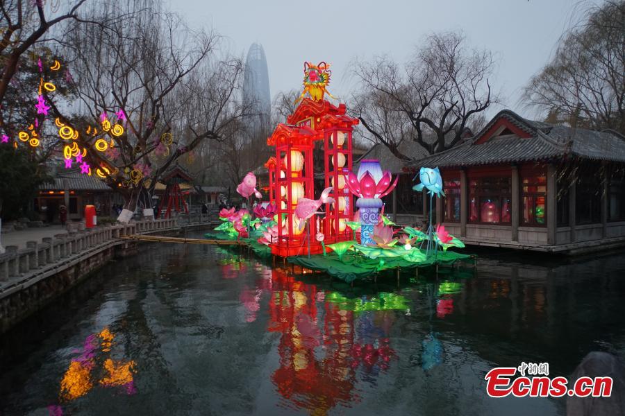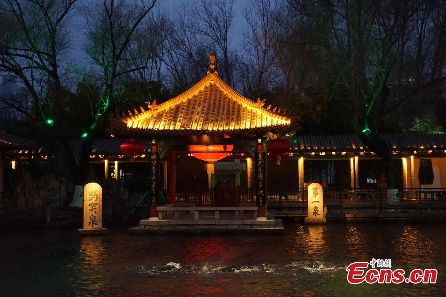 Baotu Spring is lit up by spectacular lanterns to greet the Chinese New Year in Jinan, east China's Shandong Province, Jan. 31, 2024. (Photo: China News Service/Wang Caiyi)