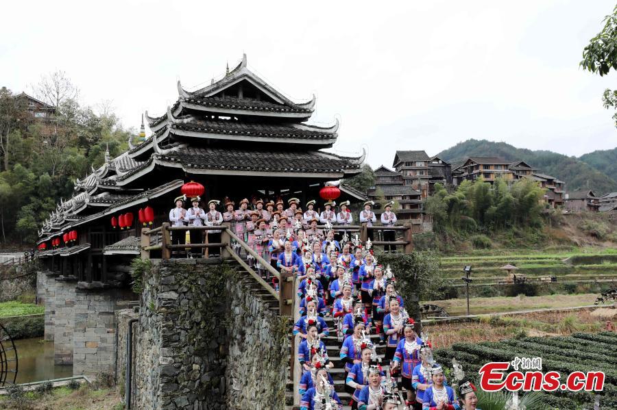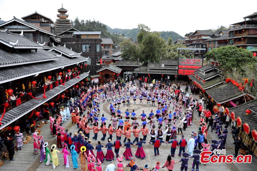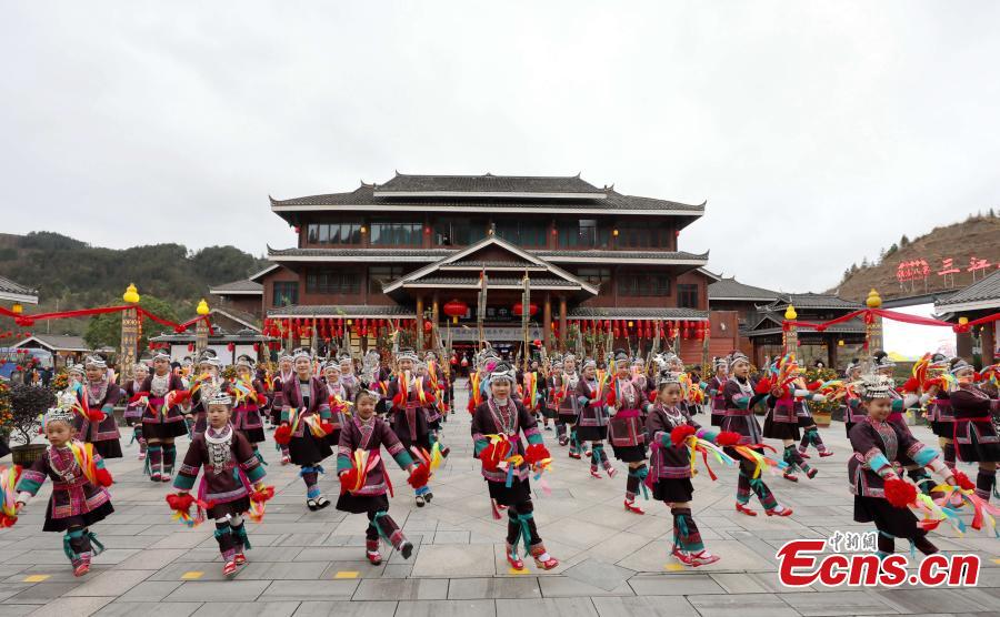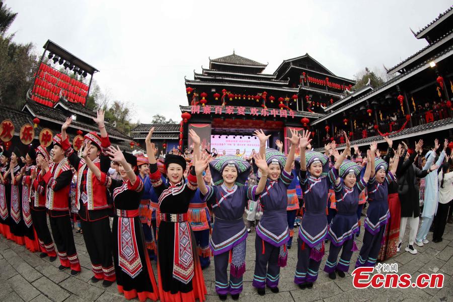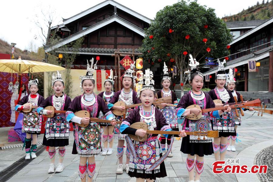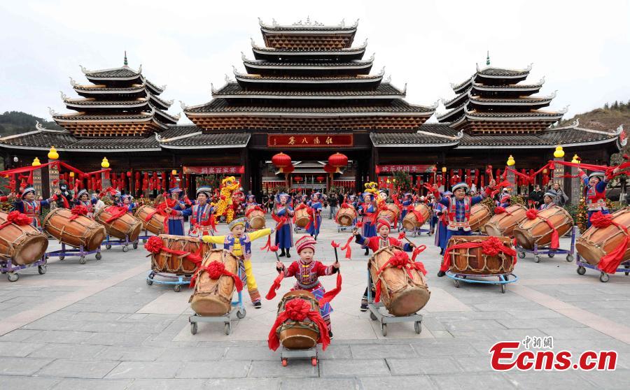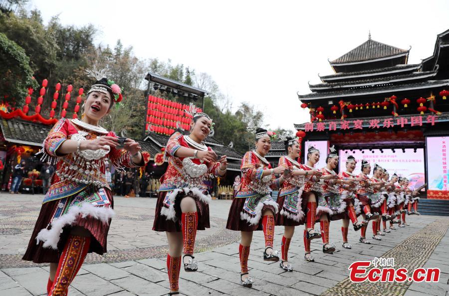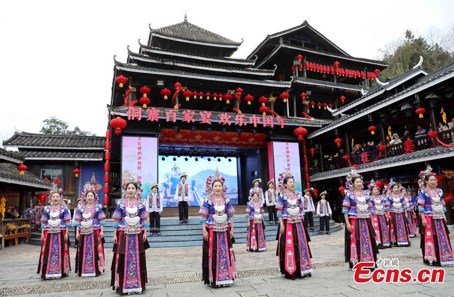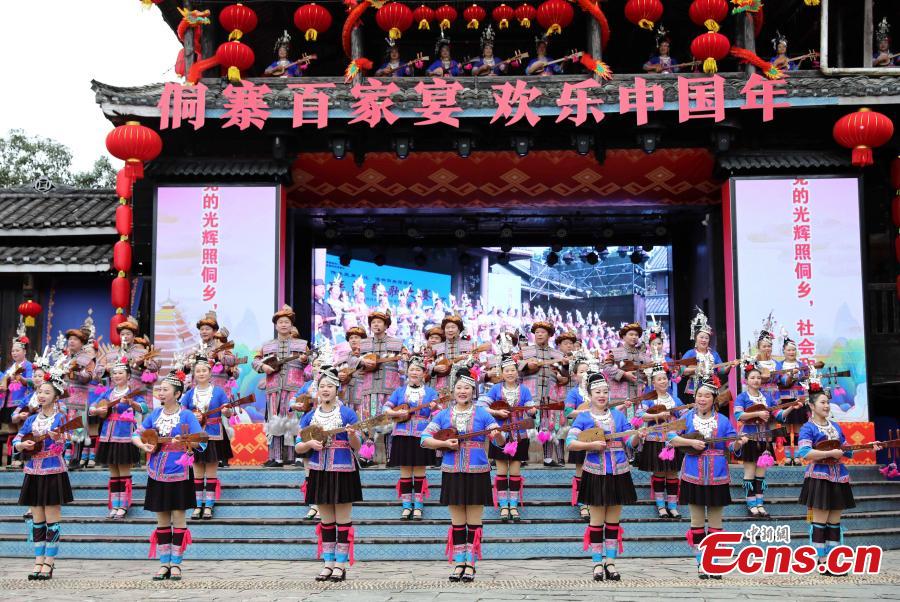 Locals perform during the "village gala" to celebrate the Spring Festival in Sanjiang Dong Autonomous County, Liuzhou City of south China's Guangxi Zhuang Autonomous Region, Feb. 3, 2024. (Photo: China News Service/Gong Pukang)