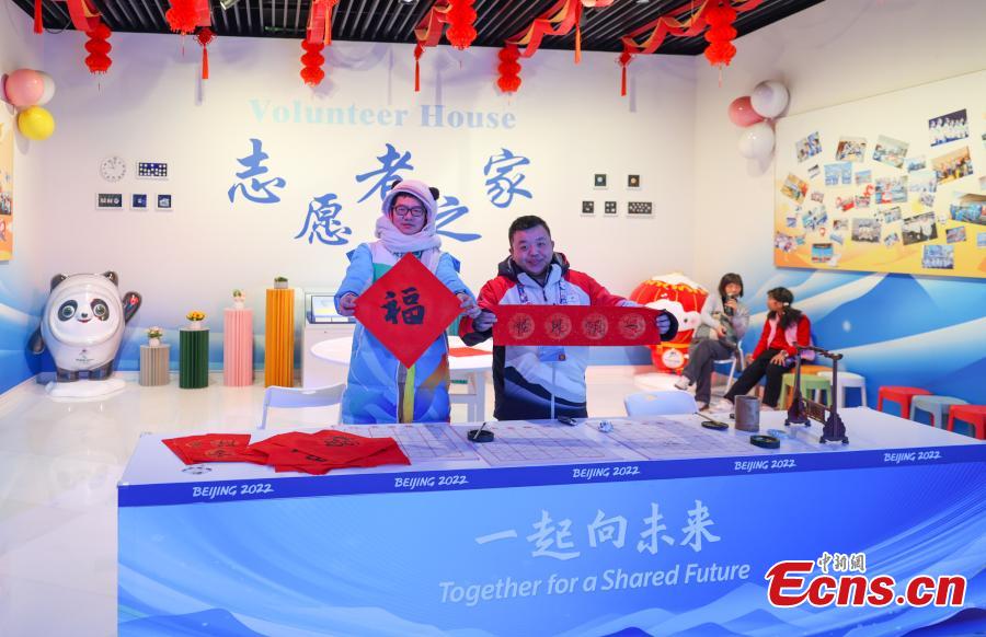 A volunteer for Beijing Olympic Games poses for a photo at Beijing Olympic Museum in Beijing, Feb. 4, 2024. (Photo: China News Service/Jia Tianyong)