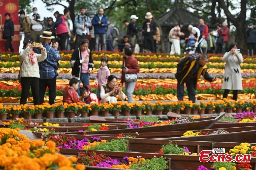 Floating water flower market attracts visitors to shop during the 14th floating flower market, a unique tradition during China's Spring Festival on Liwan Lake in Guangzhou, south China's Guangdong Province, Feb. 6, 2024. (Photo: China News Service/Chen Chuhong)