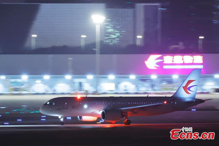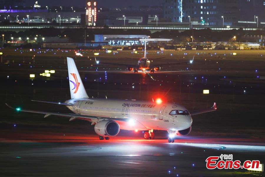 A China Eastern Airlines' C919 aircraft numbered B-001F, taxies on a runway at Shanghai Hongqiao International Airport, Feb. 16, 2024. (Photo: China News Service/Yin Liqin)