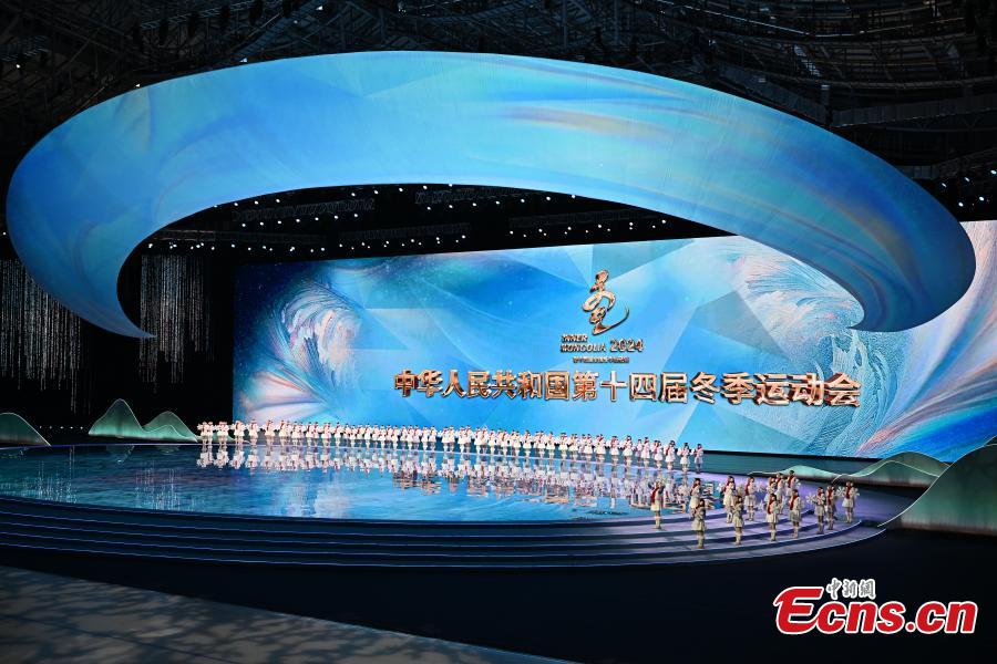 An opening ceremony of China's 14th National Winter Games is held in Hulun Buir, north China's Inner Mongolia Autonomous Region, Feb. 17, 2024. (Photo: China News Service/Cui Nan)
