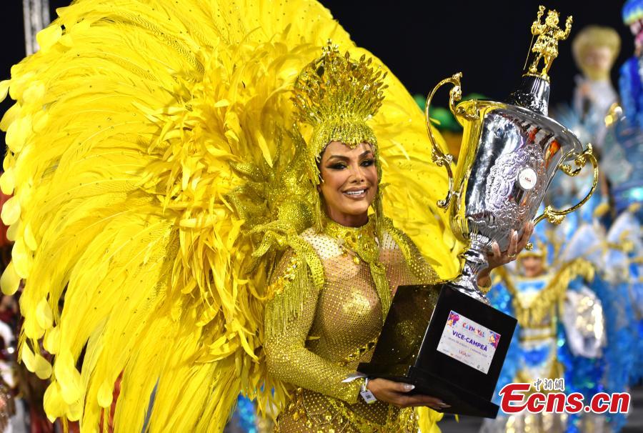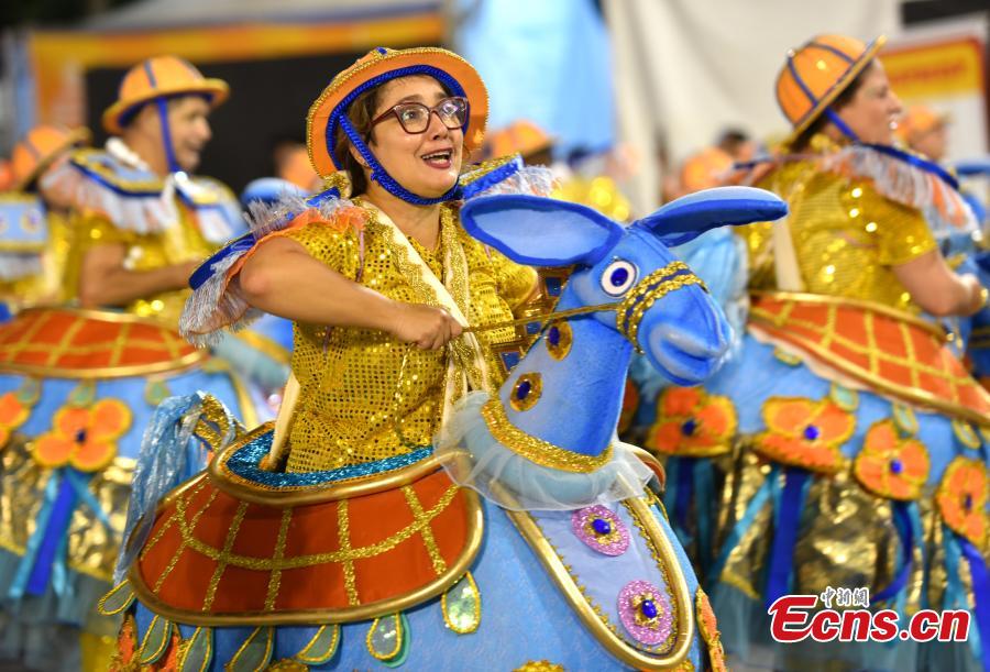 Revelers participate in the Champion's Parade in Rio de Janeiro, Brazil, on Feb. 17, 2024. (Photo: China News Service/Lin Chunyin)
