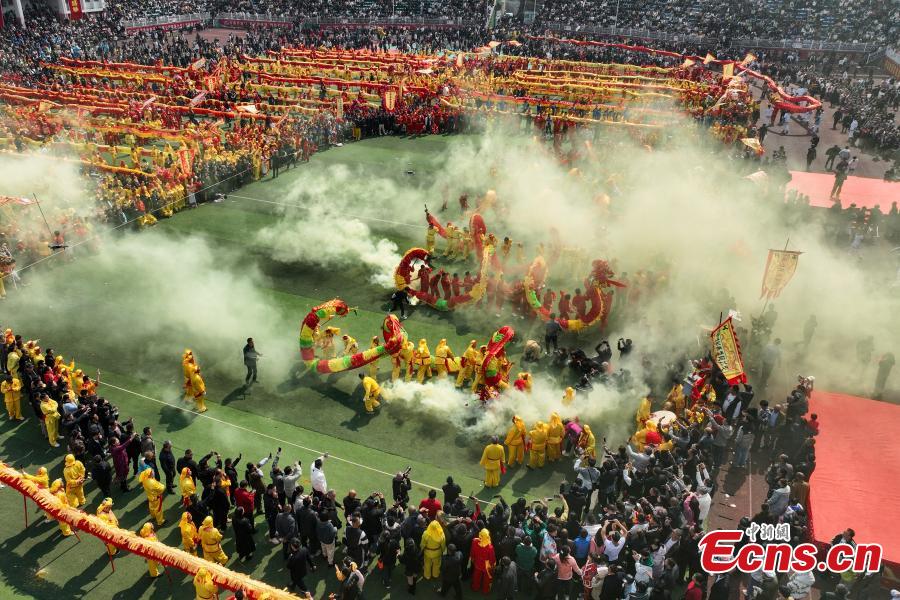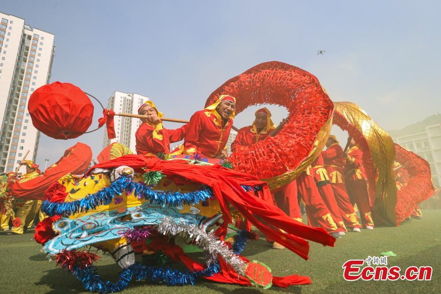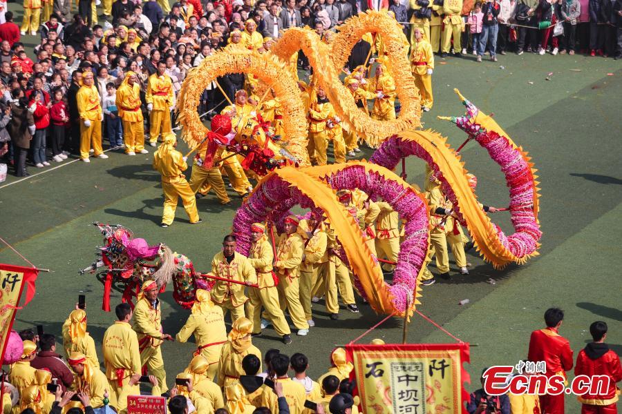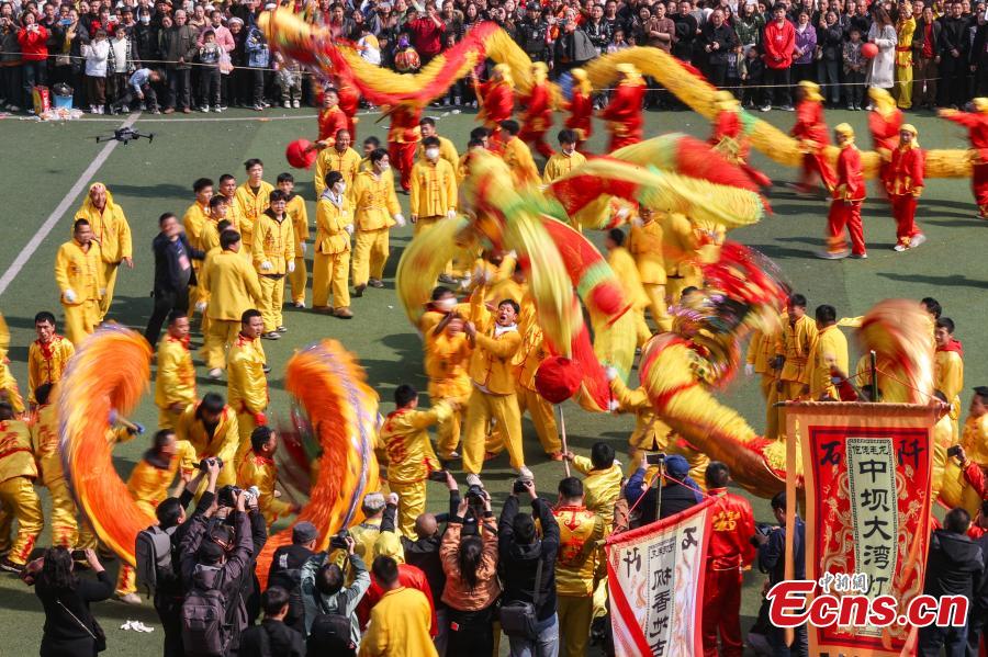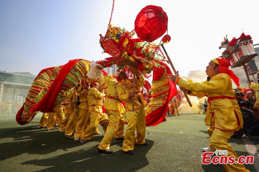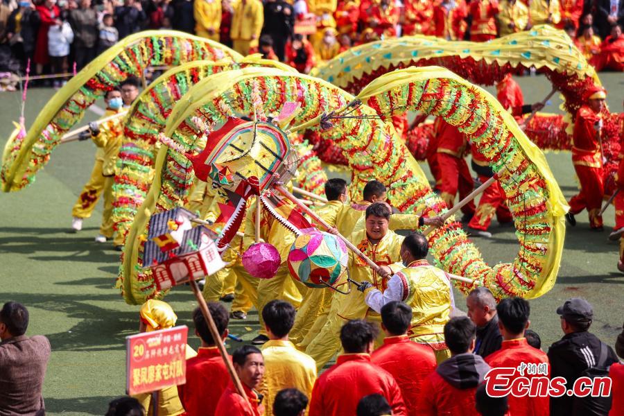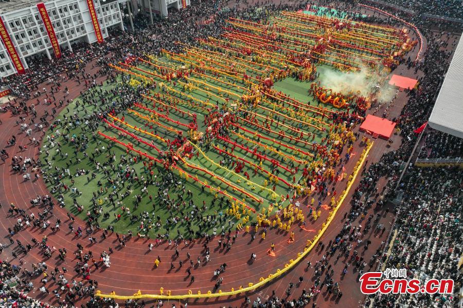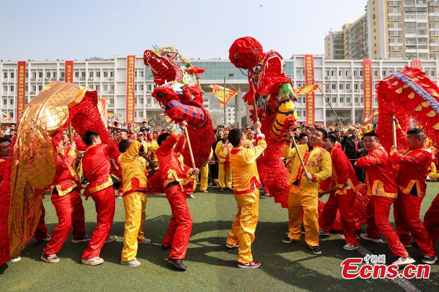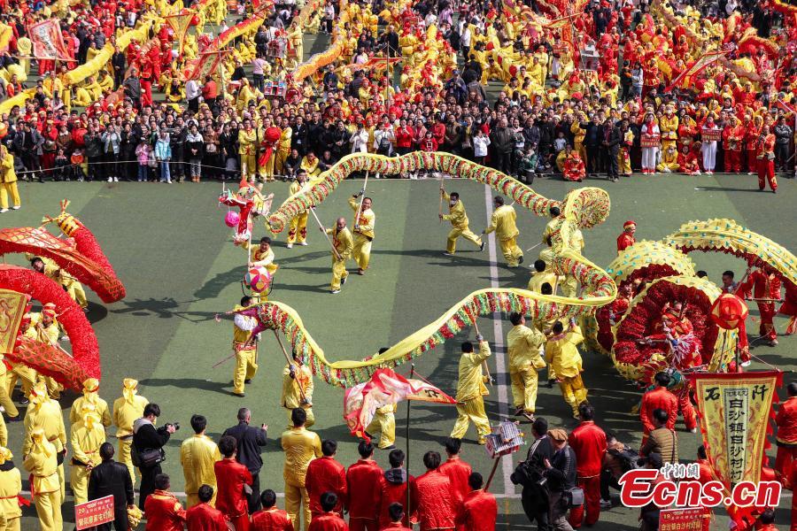 Seventy-eight dragons took part in the celebration on Tuesday. Maolong Festival, a folk activity for people of the Gelao ethnic group to celebrate the Spring Festival and lantern festival, is listed as one of the national intangible cultural heritages in 2006.