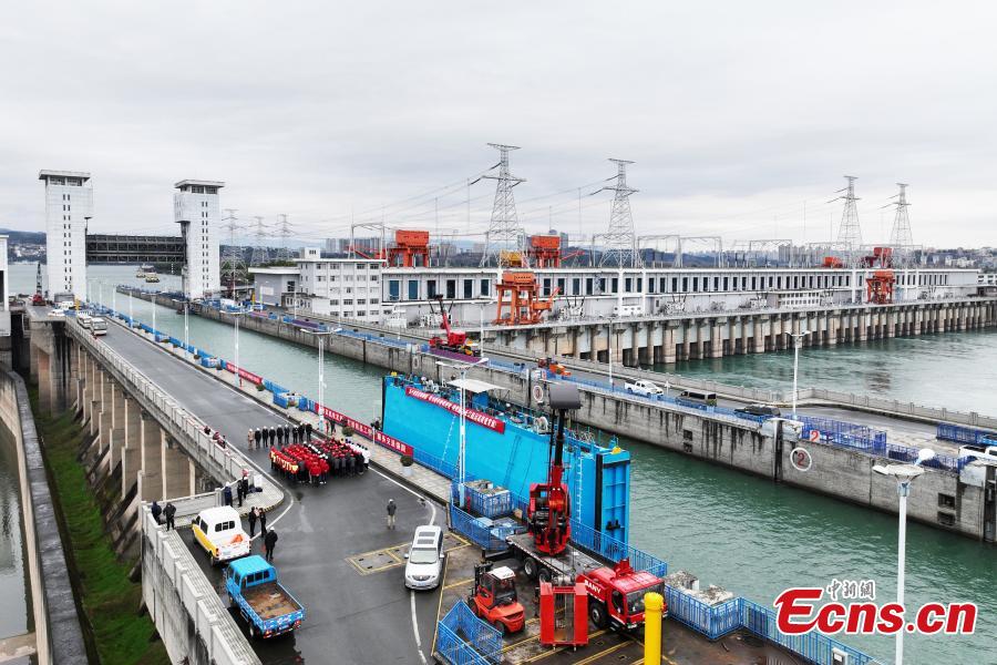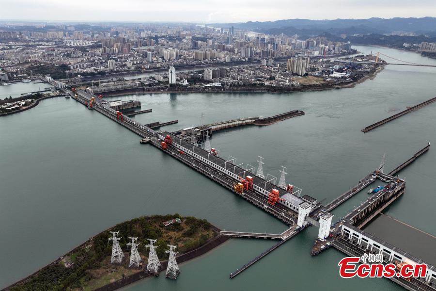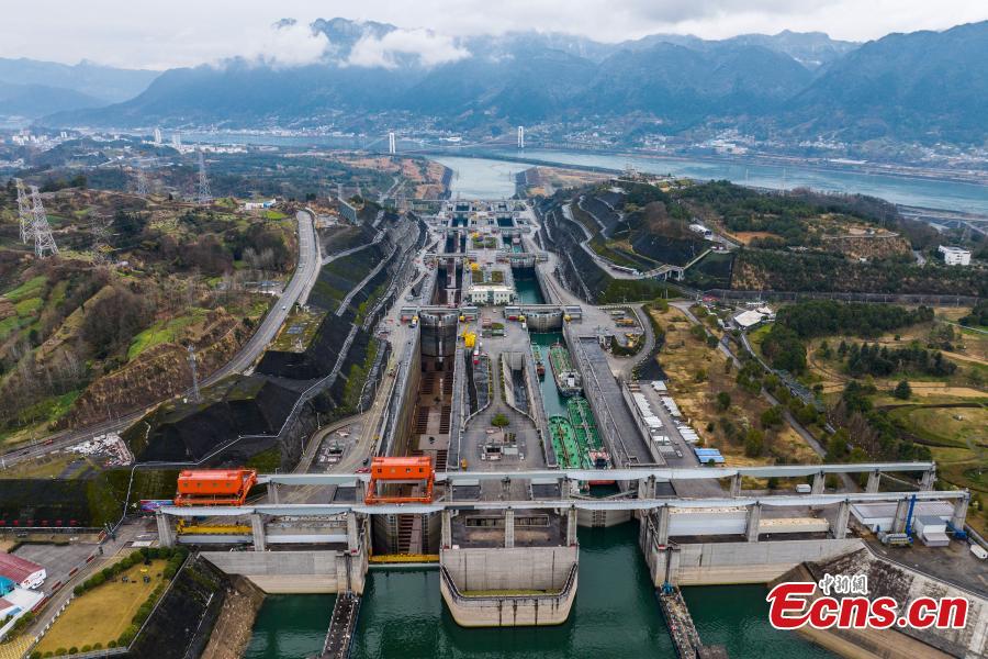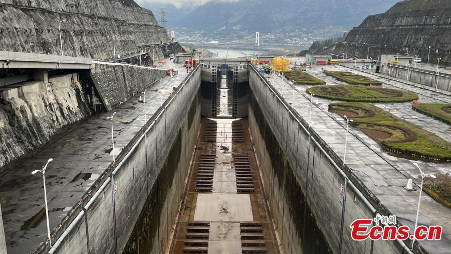 The north line ship locks of the Three Gorges Dam on the Yangtze River are closed for maintenance in central China's Hubei Province, Feb. 21, 2024. (Photo: China News Service/Wang Gang)