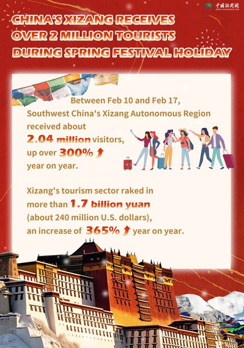 In Numbers: China's Xizang receives over 2 million tourists during Spring Festival holiday