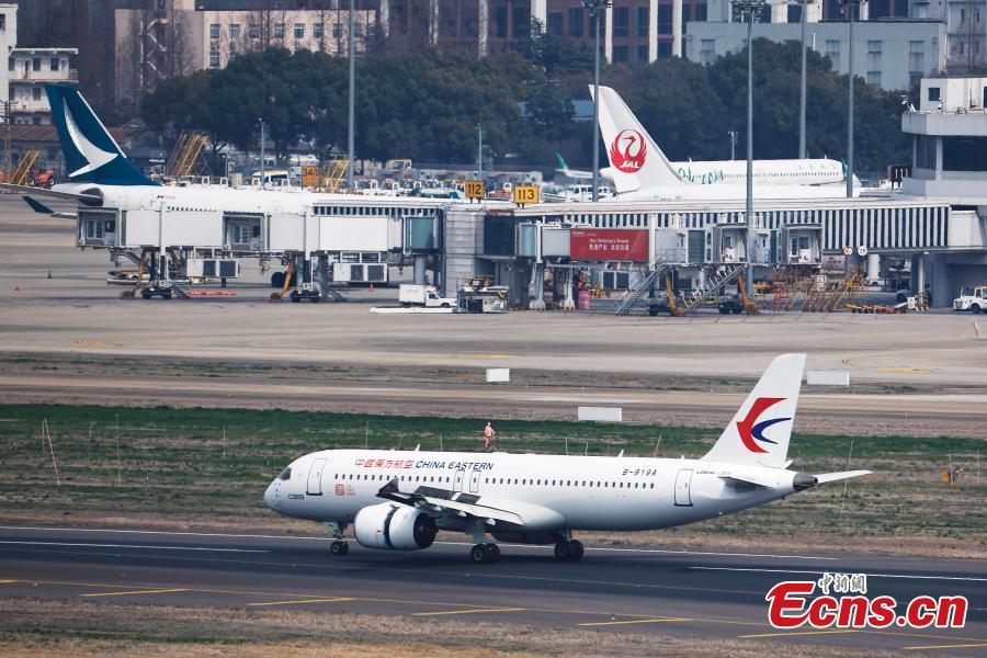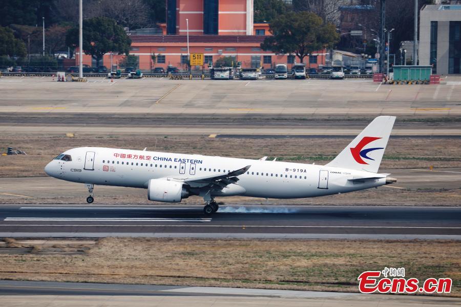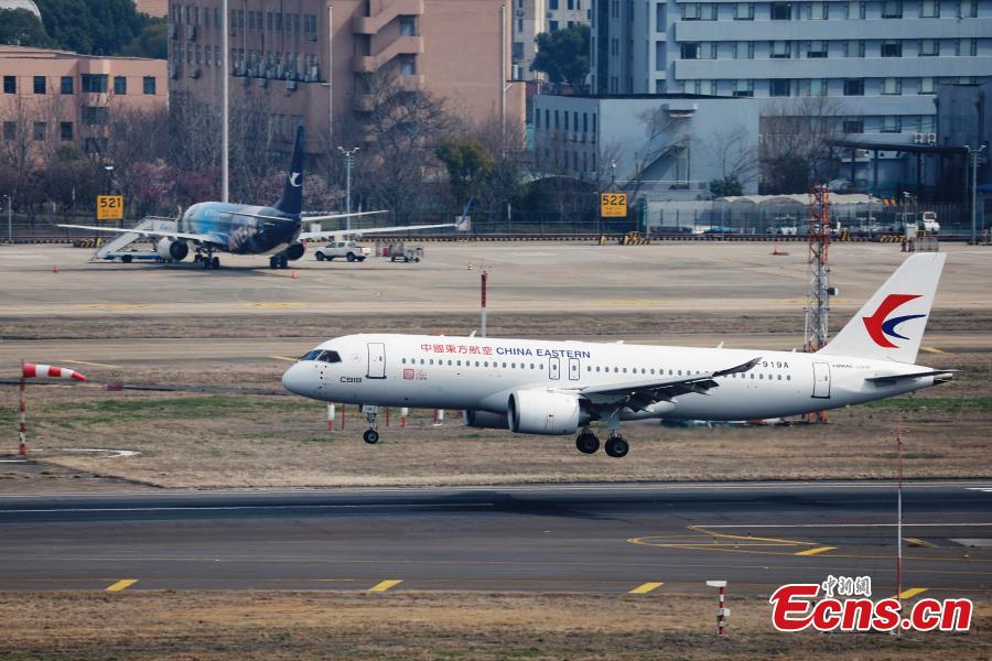 China Eastern Airlines' C919 numbered B-919A passenger aircraft lands at Shanghai Hongqiao International Airport, Feb. 26, 2024. (Photo: China News Service/Yin Liqin)