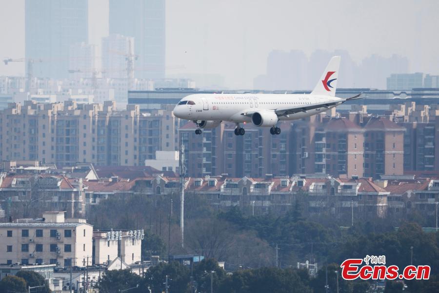 China Eastern Airlines' C919 numbered B-919A passenger aircraft prepares to make a landing at Shanghai Hongqiao International Airport, Feb. 26, 2024. (Photo: China News Service/Yin Liqin)