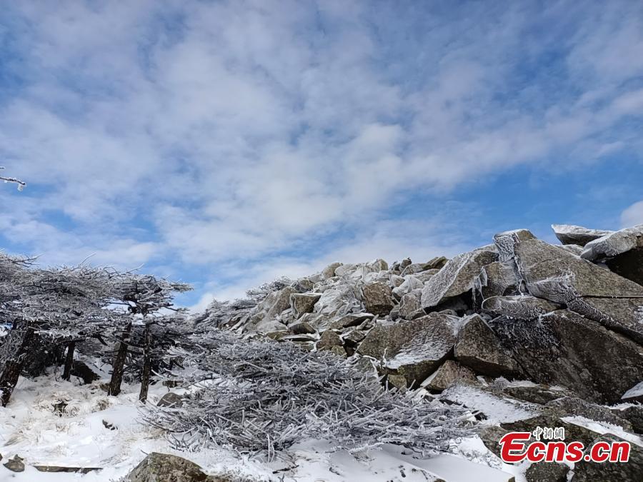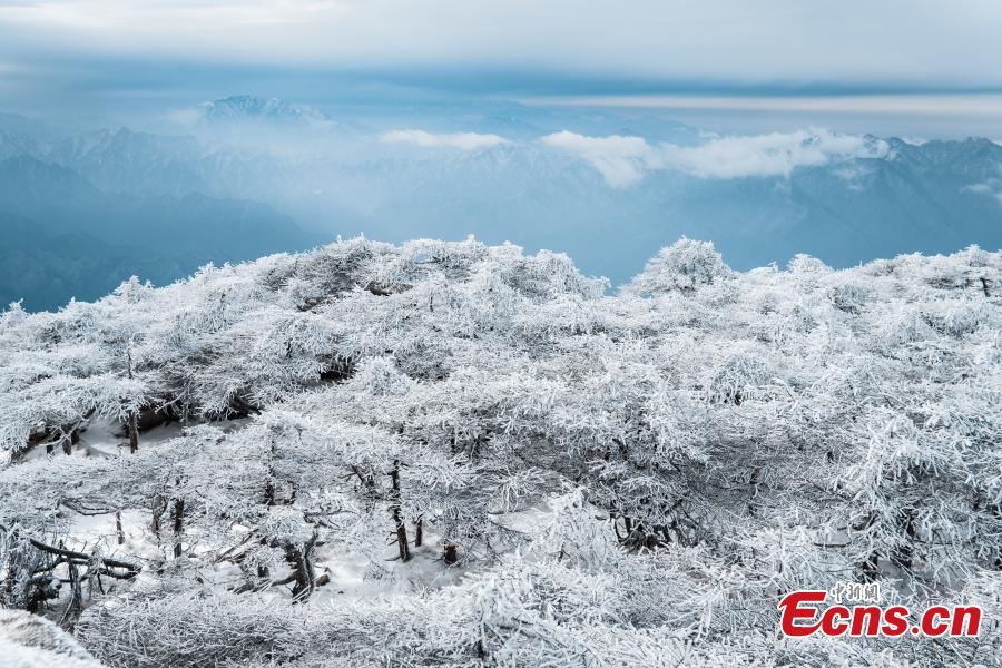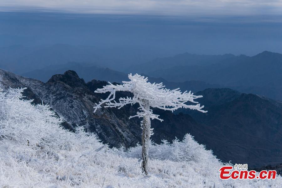 Trees turn whole white after snow at the Zhuque National Forest Park in Xi'an, northwest China's Shaanxi Province. (Photo provided to China News Service)