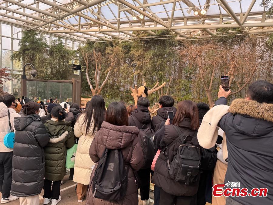 Visitors queue to view Fu Bao, the first giant panda born in South Korea in 2020, at Everland theme park in Yongin, South Korea, March 3, 2024. (Photo: China News Service/Wang Gang)