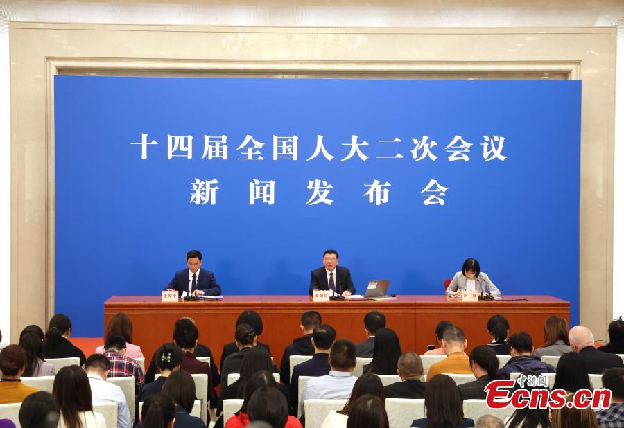 Lou Qinjian, spokesperson for the 2nd session of the 14th NPC, attends a press conference at the Great Hall of the People in Beijing, March 4, 2024. The NPC, China's national legislature, held a press conference on Monday. (Photo: China News Service/Jiang Qiming)