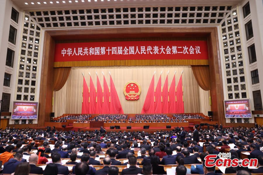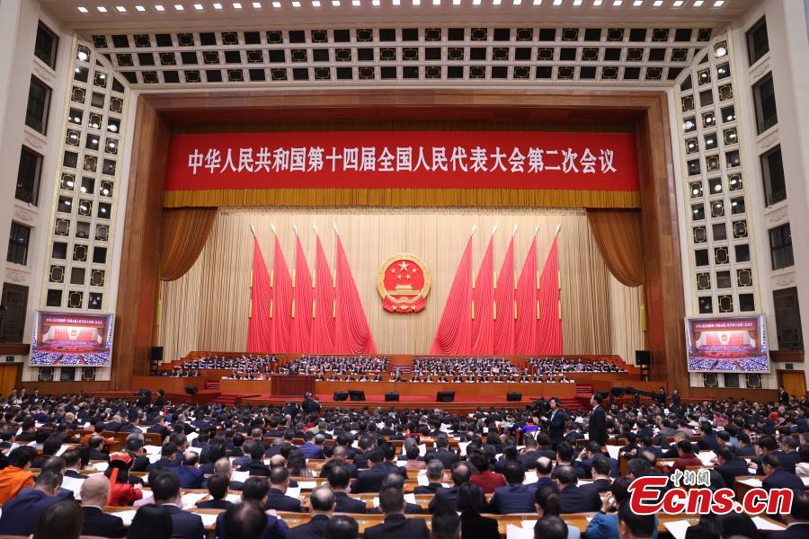 The second plenary meeting of the second session of the 14th National People's Congress (NPC) is held at the Great Hall of the People in Beijing, March 8, 2024. (Photo: China News Service/Sheng Jiapeng)