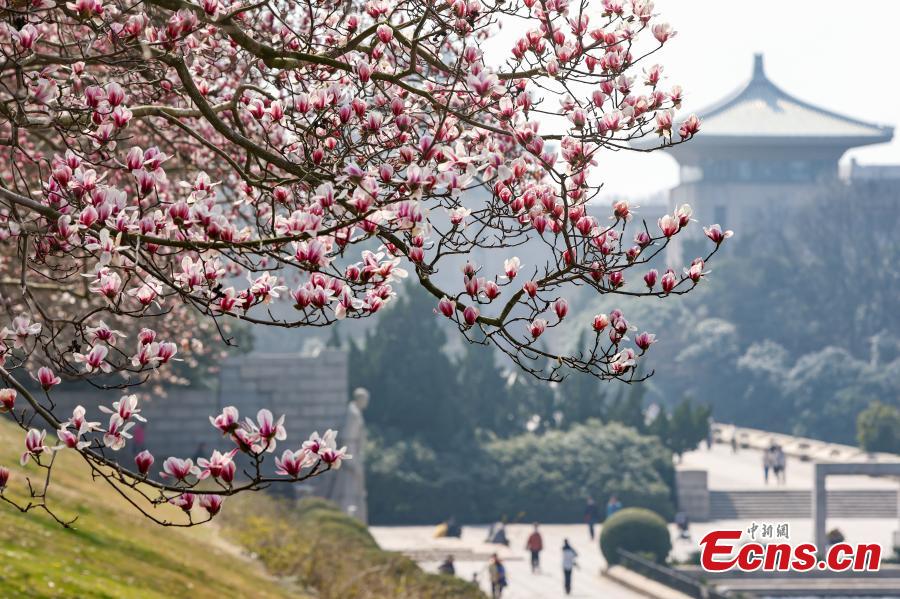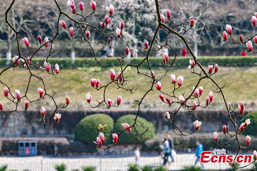 Magnolia flowers bloom at the Yuhuatai Scenic Spot in Nanjing, East China's Jiangsu province, March 10, 2024. (Photo/China News Service)
