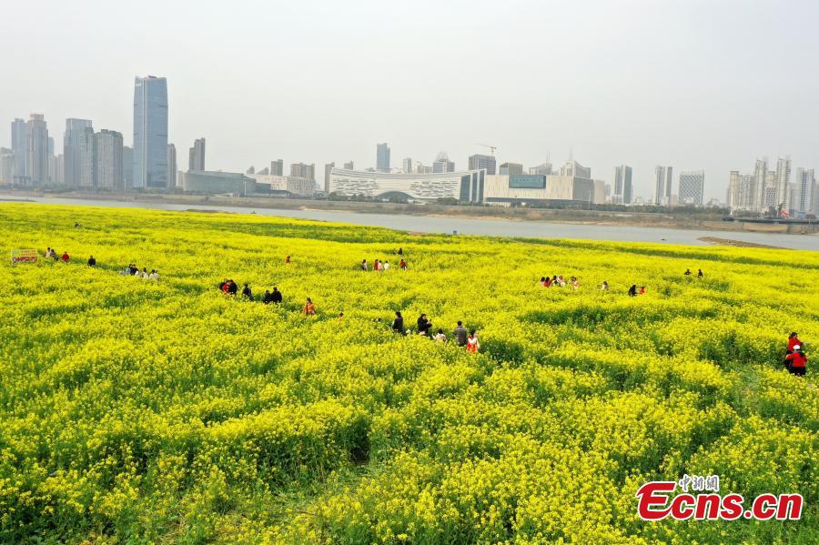 Tourists visit Donghu District of Nanchang City, Jiangxi Province, March 9, 2024 as cole flowers bloom in spring.(Photo: China News Service/Liu Zhankun)