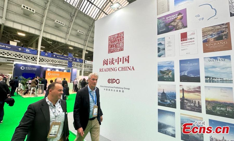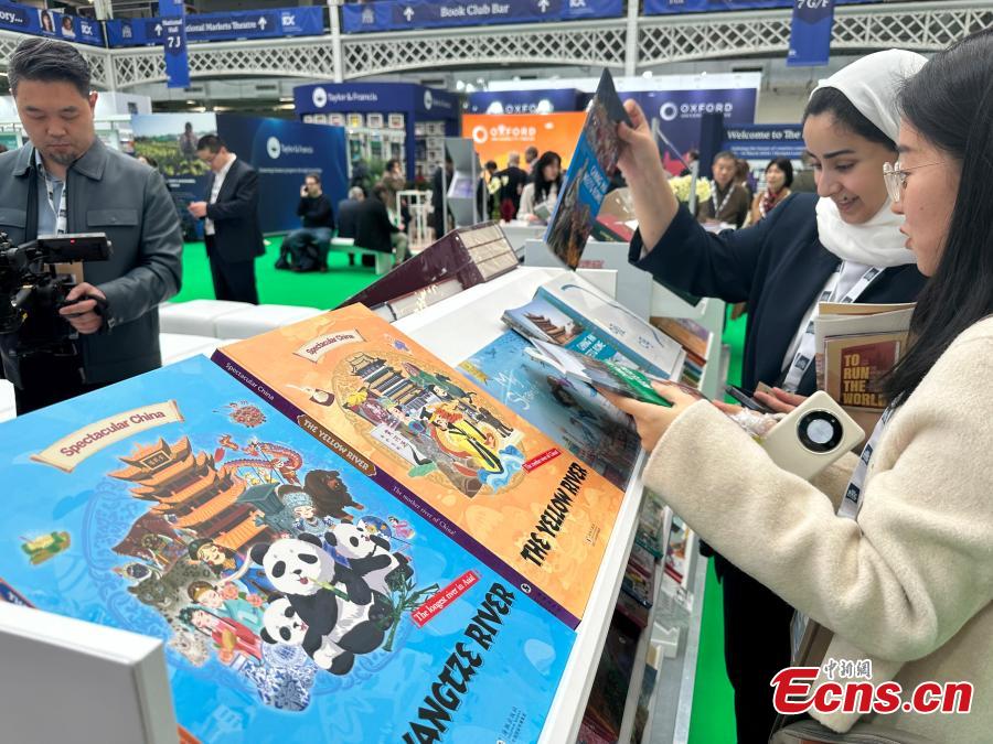Visitors read China-themed books at a booth during the London Book Fair, UK, March 12, 2024. (Photo: China News Service/Ouyang Kaiyu)