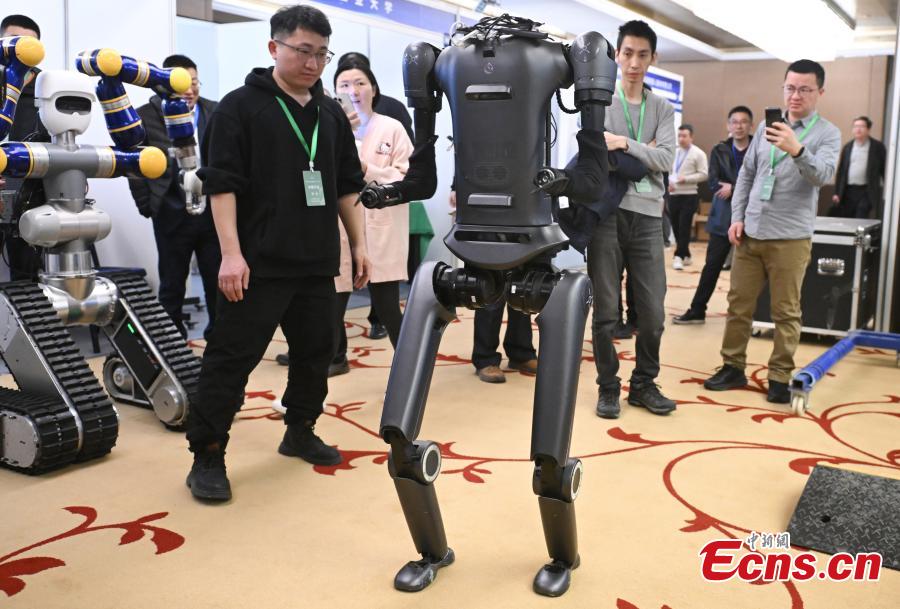 A contestant shows how a humanoid robot works at the Humanoid Robot Competition held in the Beijing Economic-Technological Development Area, March 13, 2024. (Photo: China News Service)