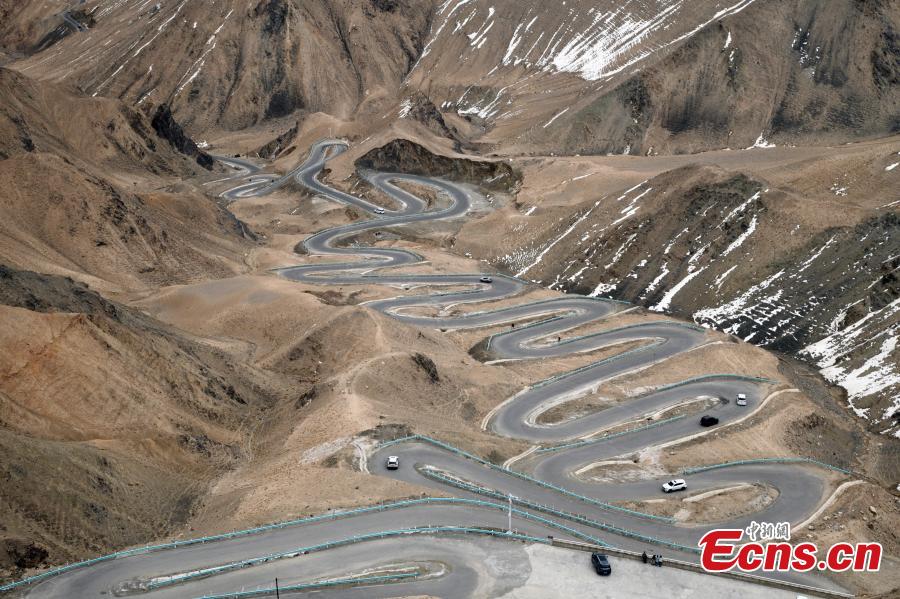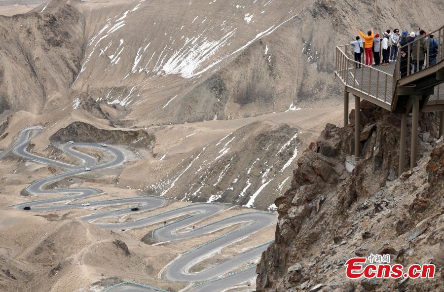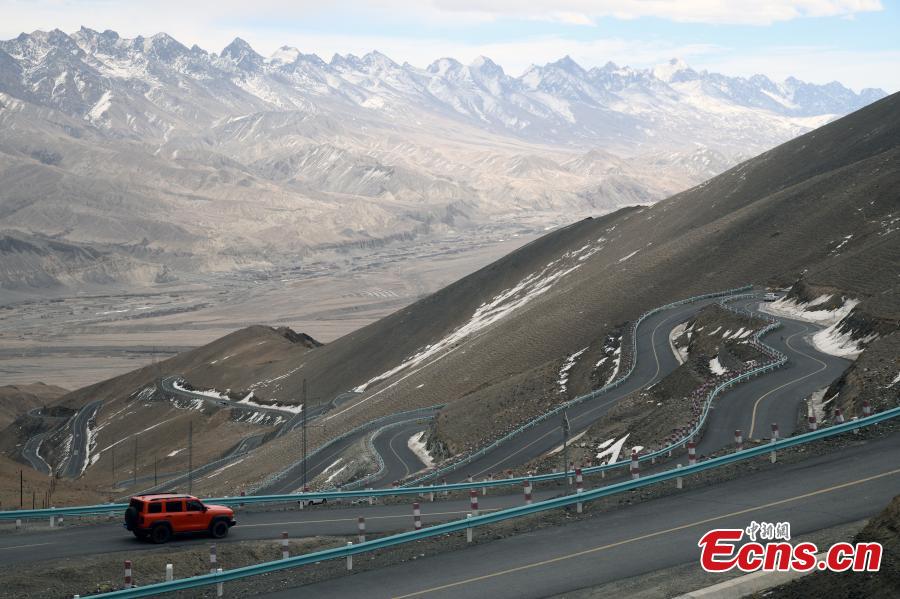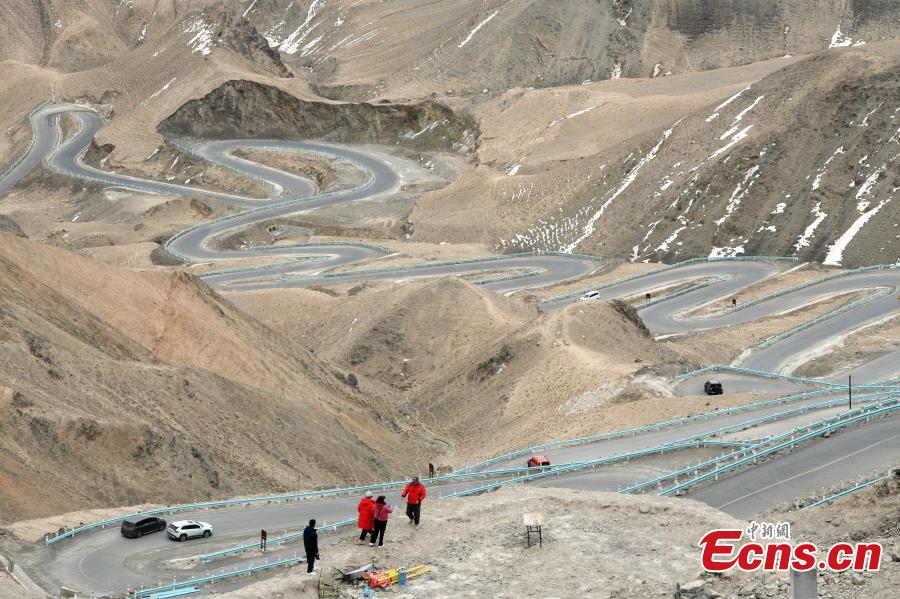 The Panlong road with 600 hairpin bends reopens to the traffic after seasonal hibernation in Taxkorgan Tajik Autonomous County, northwest China's Xinjiang Uyghur Autonomous Region, March 21, 2024. (Photo: China News Service/Sun Tingwen)