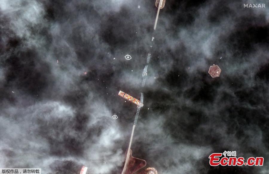 A satellite image shows a closer view of the Dali container ship and a collapsed Francis Scott Key Bridge in Baltimore, Maryland, the United States, March 26, 2024. (Photo/Agencies)