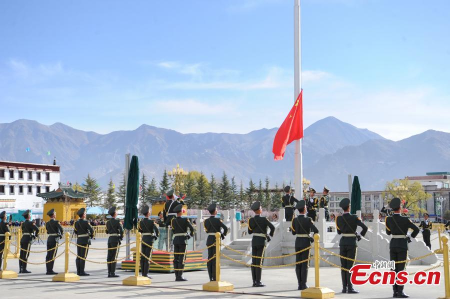 A flag-raising ceremony is held to celebrate the Serfs' Emancipation Day at the square in front of the Potala Palace in Lhasa, southwest China's Xizang Autonomous Region, March 28, 2024. (Photo/China News Service)