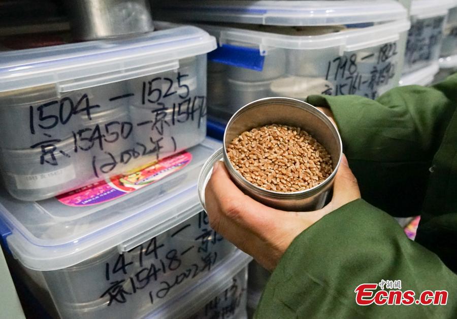 A staff member shows a can of seeds preserved at minus 4 degrees Celsius in the national germplasm resources back-up banks in Xining, northwest China's Qinghai Province, April 2, 2024. (Photo: China News Service/Ma Mingyan)