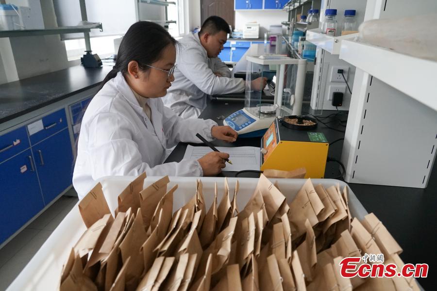 Students from Qinghai University conduct germplasm resource identification in the national germplasm resources back-up banks in Xining, northwest China's Qinghai Province, April 2, 2024. (Photo: China News Service/Ma Mingyan)