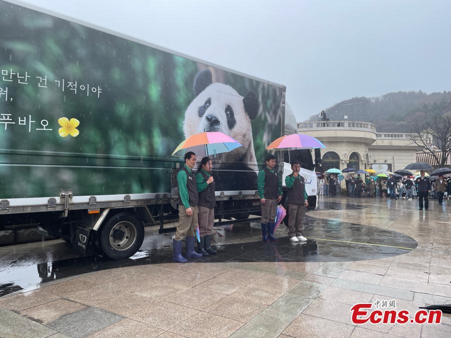 A specially-made vehicle carrying giant panda Fu Bao is to leave Everland in Yongin, South Korea, April 3, 2024. (Photo: China News Service/Liu Xu)