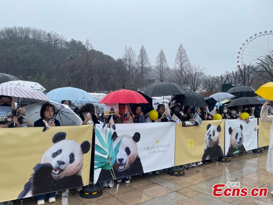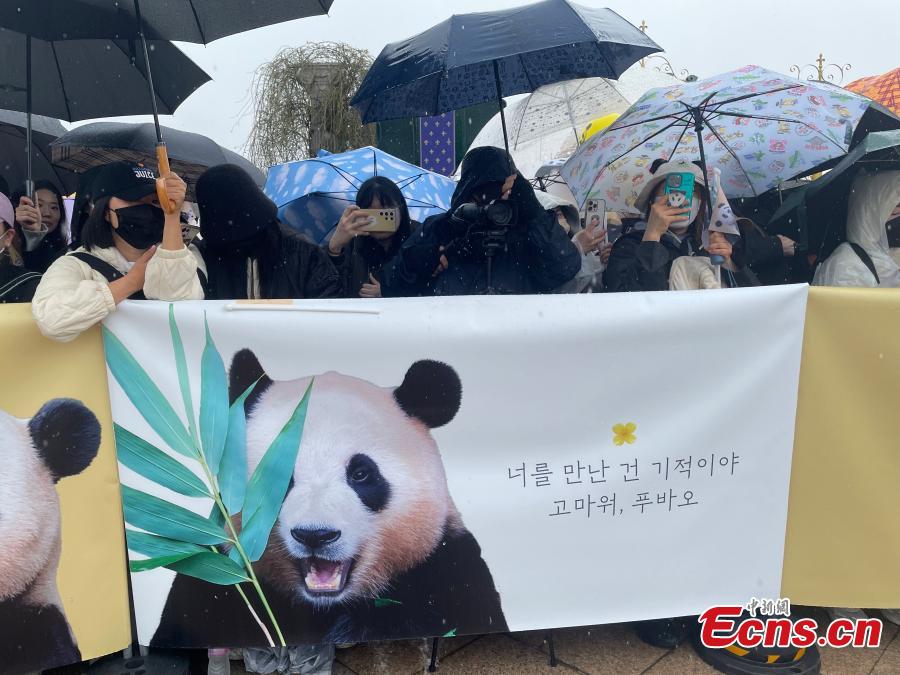 Panda fans gathered at Everland in Yongin, about 40 km south of the capital Seoul, to say goodbye to Fu Bao, the first giant panda born in South Korea, April 3, 2024. (Photo: China News Service/Liu Xu)
