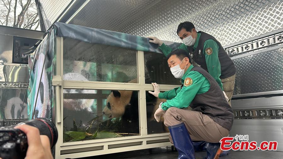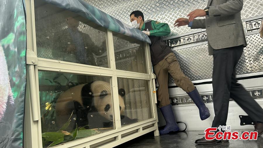 Giant panda Fu Bao is to be loaded onto a specially-made vehicle in Yongin, South Korea, April 3, 2024. (Photo: China News Service/Liu Xu)