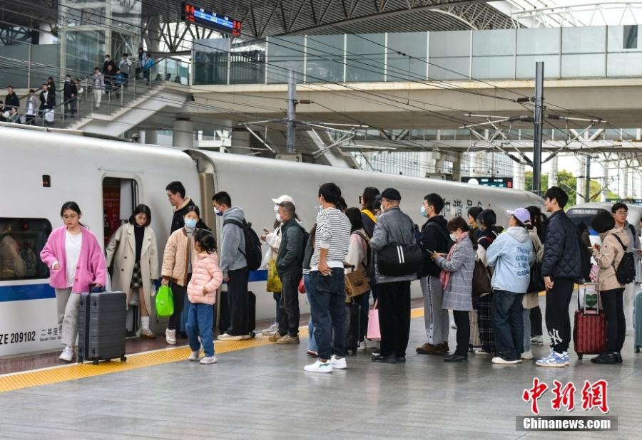 Travelers walk on the platform at Nanchang Railway Station in east China's Jiangxi Province, April 6, 2024. (Photo: China News Service/Liu Lixin)