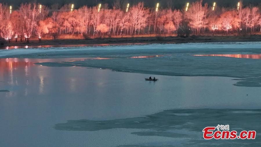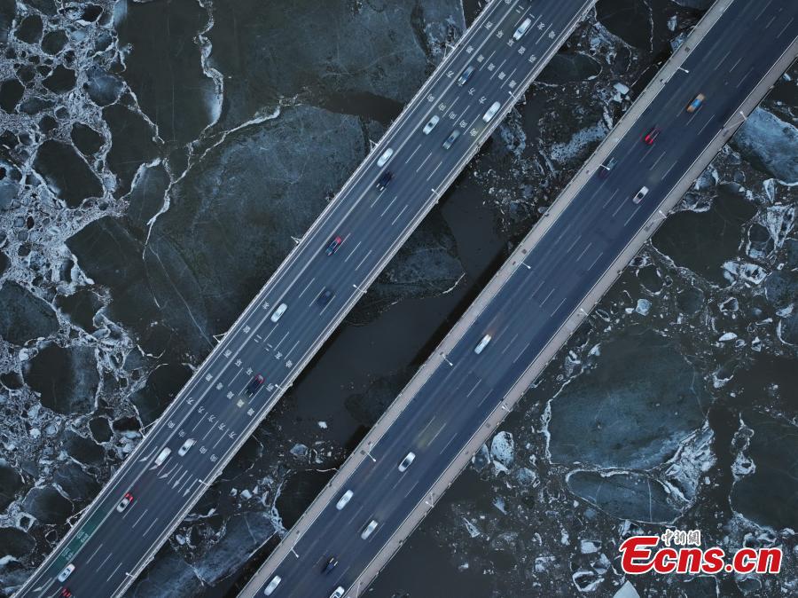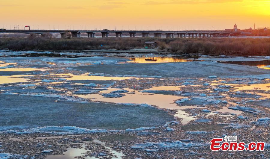 Ice chunks float on Songhua River as temperatures rise in Harbin, northeast China's Heilongjiang Province, April 6, 2024. (Photo/VCG)