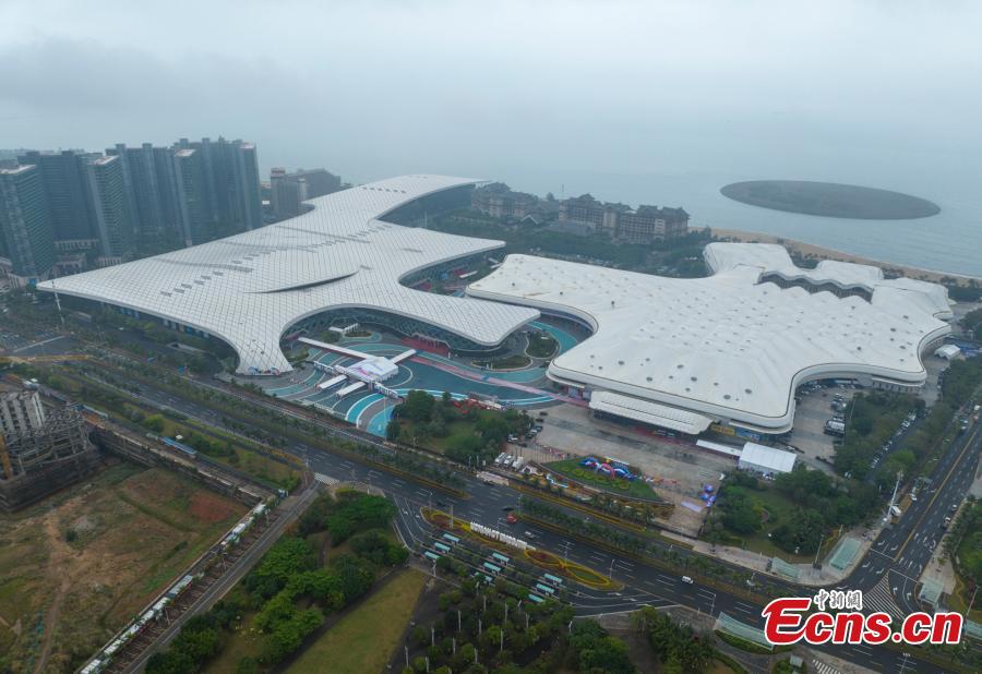 Aerial view of the Hainan International Convention and Exhibition Center, the main venue for the 4th China International Consumer Products Expo in Haikou, south China's Hainan Province, April 10, 2024. (Photo: China News Service/Luo Yunfei)