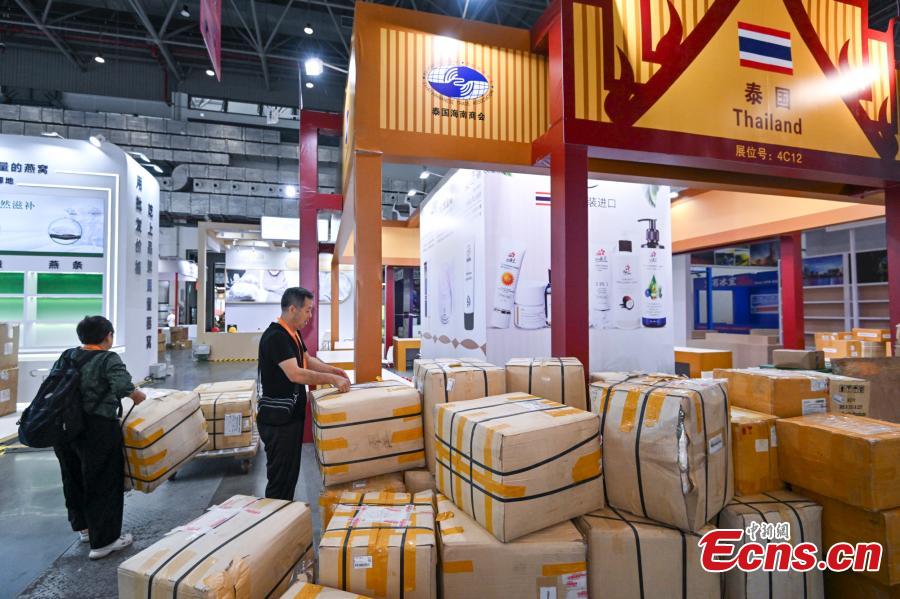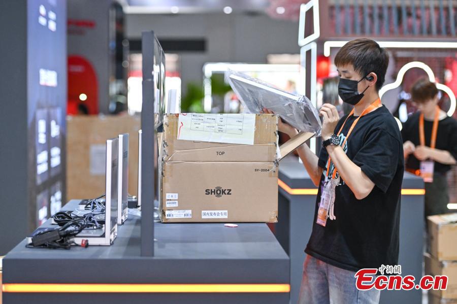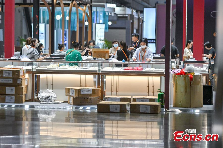 Exhibitors make final preparations for the 4th China International Consumer Products Expo in Haikou, south China's Hainan Province, April 10, 2024. (Photo: China News Service/Luo Yunfei)