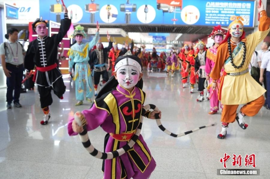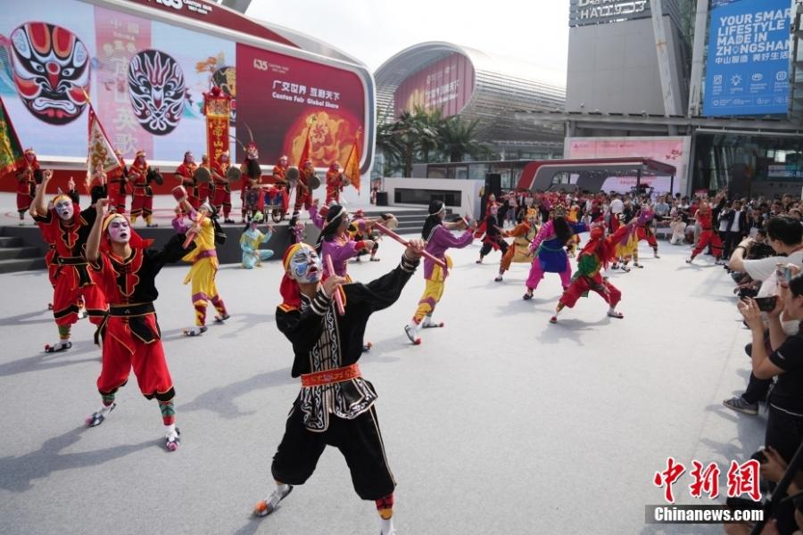 Actors perform traditional Yingge folk dance during the opening ceremony of the 135th Canton Faire in Guangzhou, south China's Guangdong Province, April 15, 2024. (Photo: China News Service/Chen Jimin)