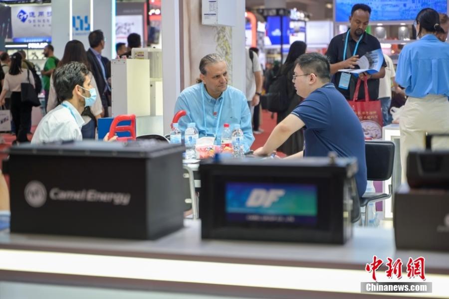 Foreign visitors talk with an exhibitor at the 135th Canton Faire in Guangzhou, south China's Guangdong Province, April 15, 2024. (Photo: China News Service/Chen Jimin)