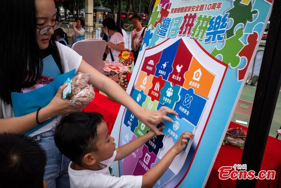 A boy plays a game during a themed activity on national security at Victoria Park in the Hong Kong Special Administrative Region, April 15, 2024. (Photo: China News Service/Hou Yu)