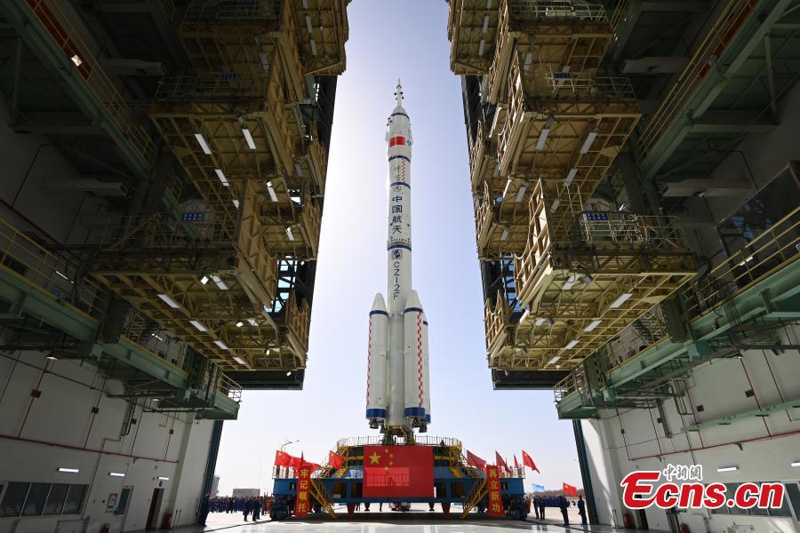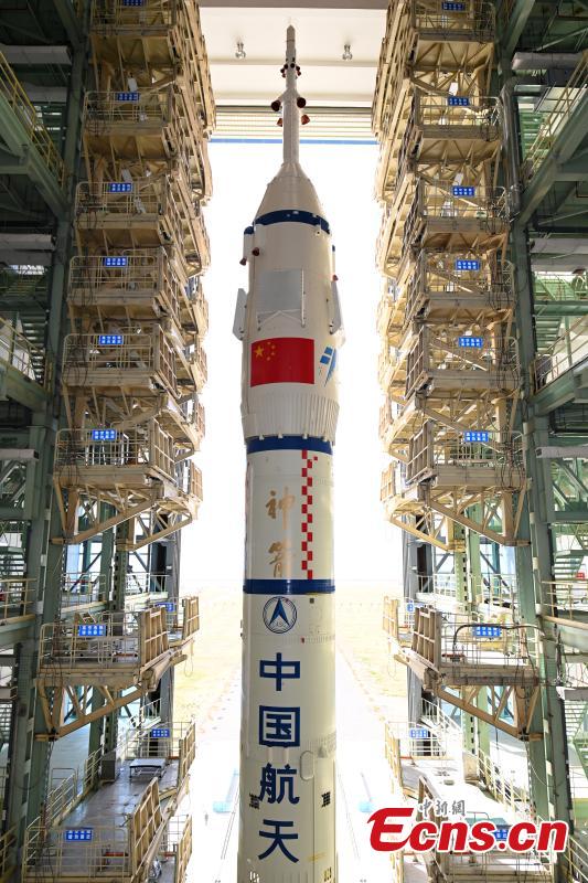 The combination of Long March 2F carrier rocket and the Shenzhou-18 crewed spaceship is vertically transferred to the launch pad at the Jiuquan Satellite Launch Center in northwest China, April 17, 2024. (Photo: China News Service/Wang Jiangbo)
