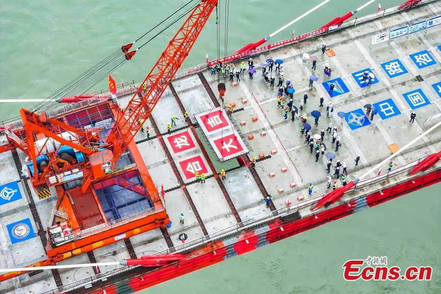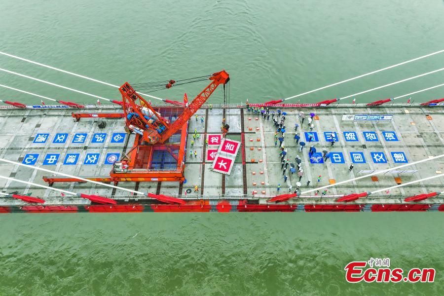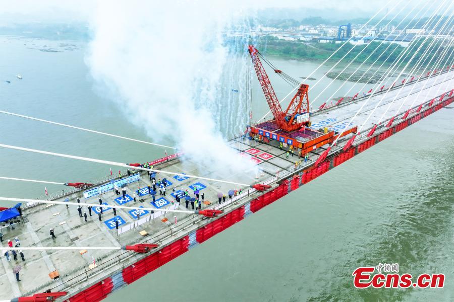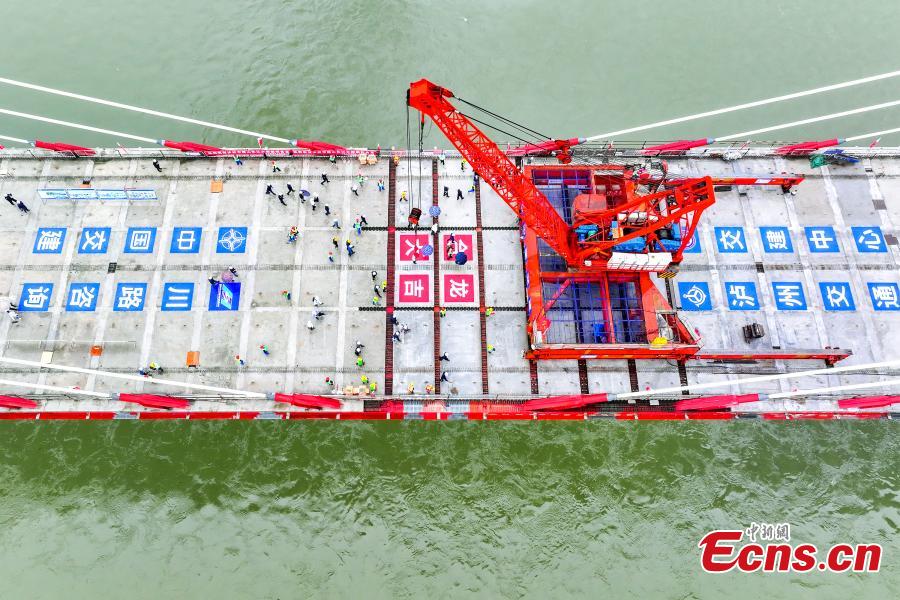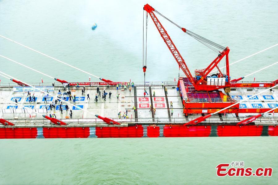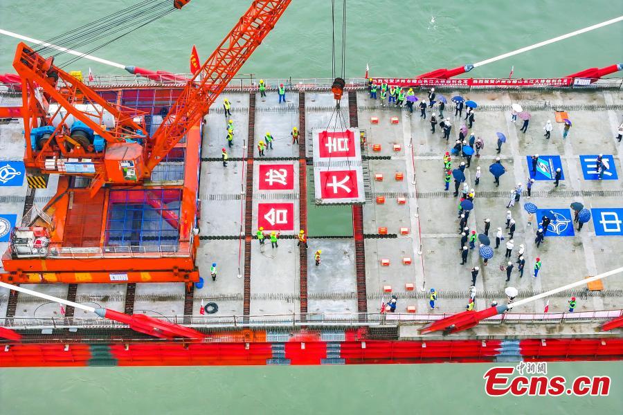 The construction site of the Rongshan Yangtze River Bridge in Luzhou, southwest China's Sichuan Province, April 22, 2024. (Photo: China News Service/Li Guipng)