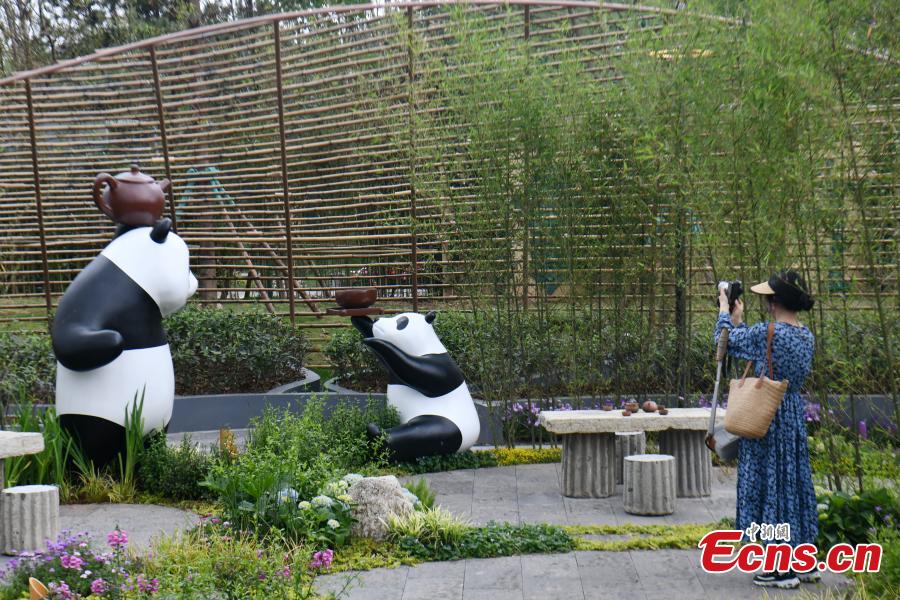 Mascots are displayed at the main venue of the International Horticultural Exhibition 2024 Chengdu, southwest China's Sichuan Province, April 22, 2024. (Photo: China News Service/Zhang Lang)